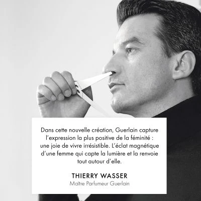 C’est l’empreinte olfactive d’une personnalité radieuse. Une fragrance facettée comme un joyau, qui rejoue dans un registre fruité et intensément lumineux les ingrédients essentiels de Mon Guerlain : lavande, jasmin Sambac, vanille Tahihensis et santal. Un accord poire souffle une ouverture joyeuse à cette composition. Un irrésistible sourire… Pétillant et espiègle, il fond ses accents fruités dans un cœur floral contrasté où la fraîcheur de la lavande nuance les accents solaires du jasmin. Puis la vanille installe son parfum délicieux : lovée dans les notes boisées crémeuses du santal, elle tisse un sillage oriental tendre et sensuel.
