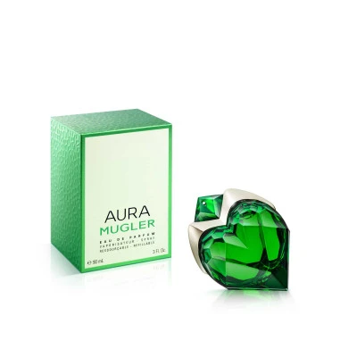 L’Eau de Parfum Aura MUGLER est encapsulĂ©e dans un flacon-cĹ“ur, symbole universel de la vie, siège des Ă©motions. CĹ“ur battant, facettĂ© et miroitant comme une Ă©meraude, sa couleur Ă©voque celle de la vie, de l’espoir, de l’intuition. Une crĂ©ation signĂ©e Mugler, sertie de son M mĂ©tallique.