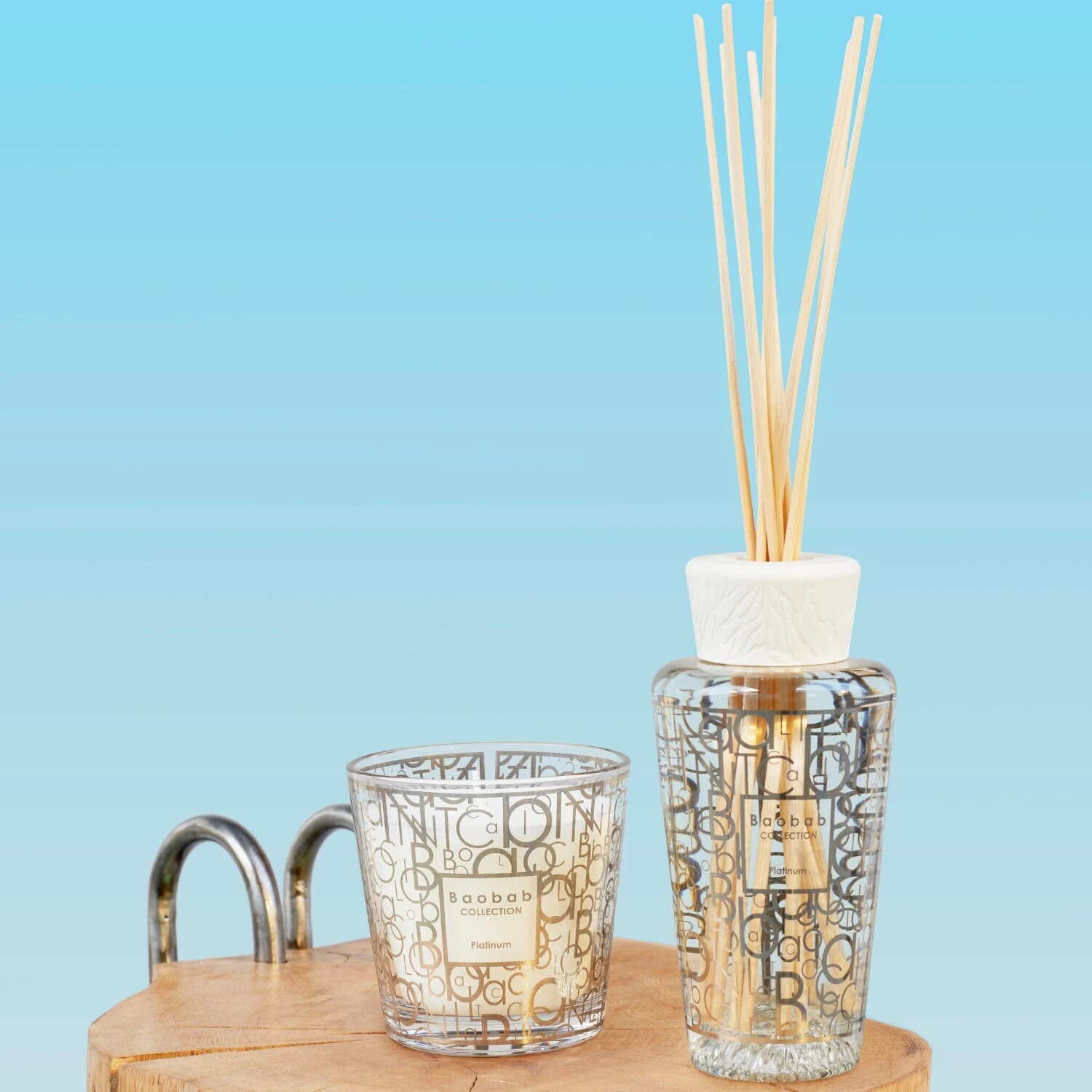 La bougie parfumée Platinum se relooke en petite taille pour une version au monogramme platine, très identitaire de notre marque.