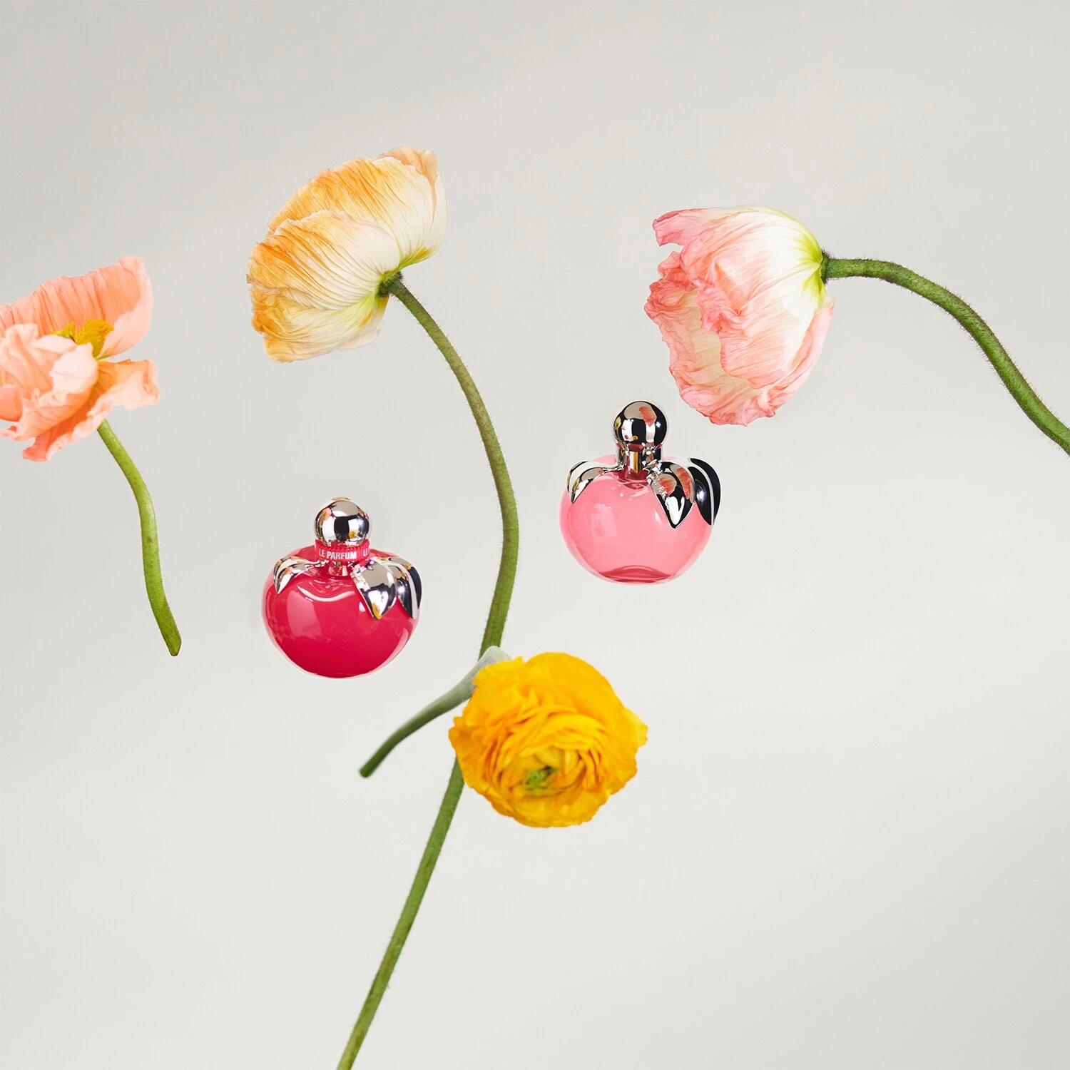 Le flacon pomme signature de Nina se pare d’une nouvelle couleur rose vibrant, aux tons pop et joyeux. Le col est orné d’un élégant ruban texturé aux inscriptions argentées.